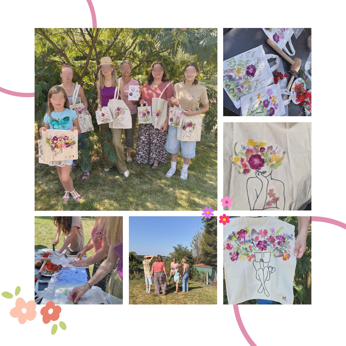 Après un petit entraînement, vous saurez frapper avec justesse pour révéler les formes et les couleurs des feuilles et des fleurs. Vous composerez ensuite un décor unique et végétal sur un petit sac et sur un élégant cabas en coton (tote-bag), avec lesquels vous repartirez.